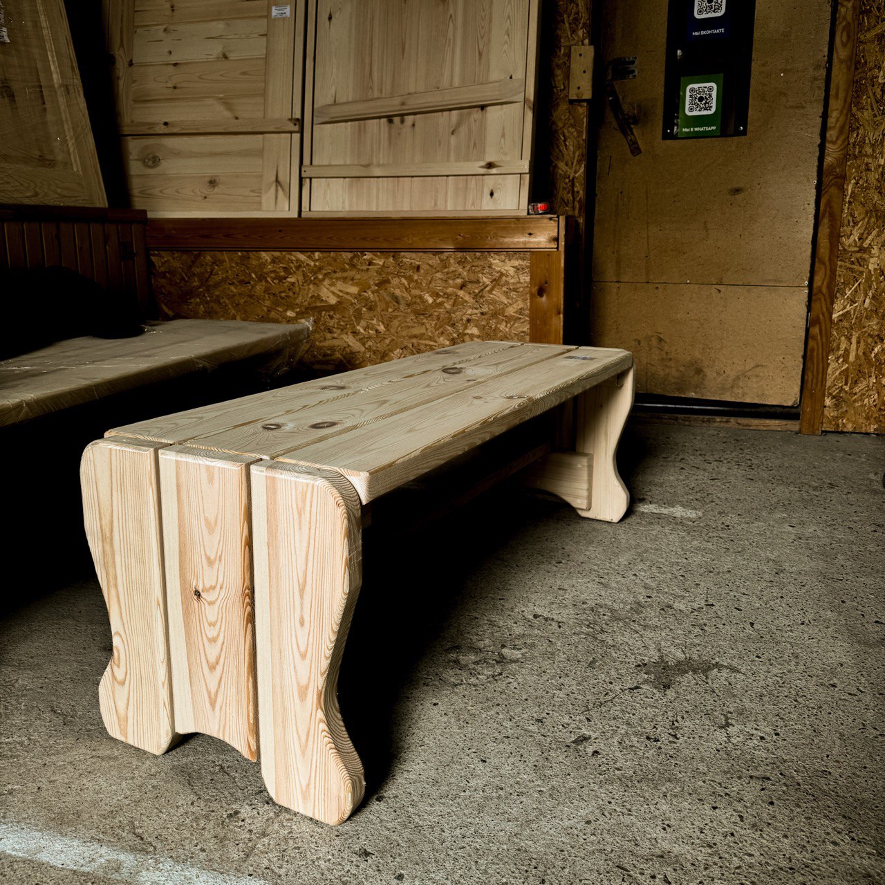 Лавка изготовлена из массива хвойных пород (сосна, ель), прошедших камерную сушку.